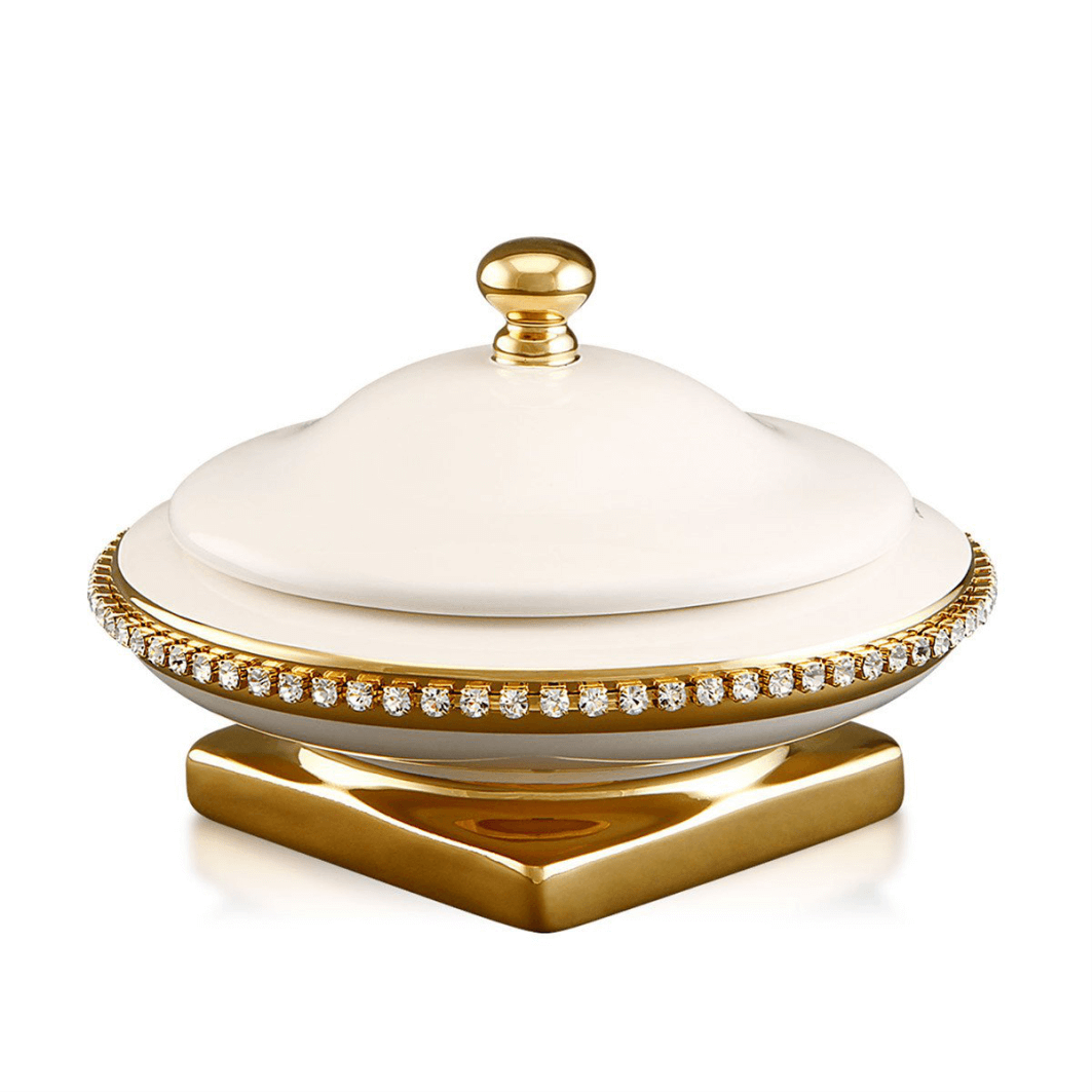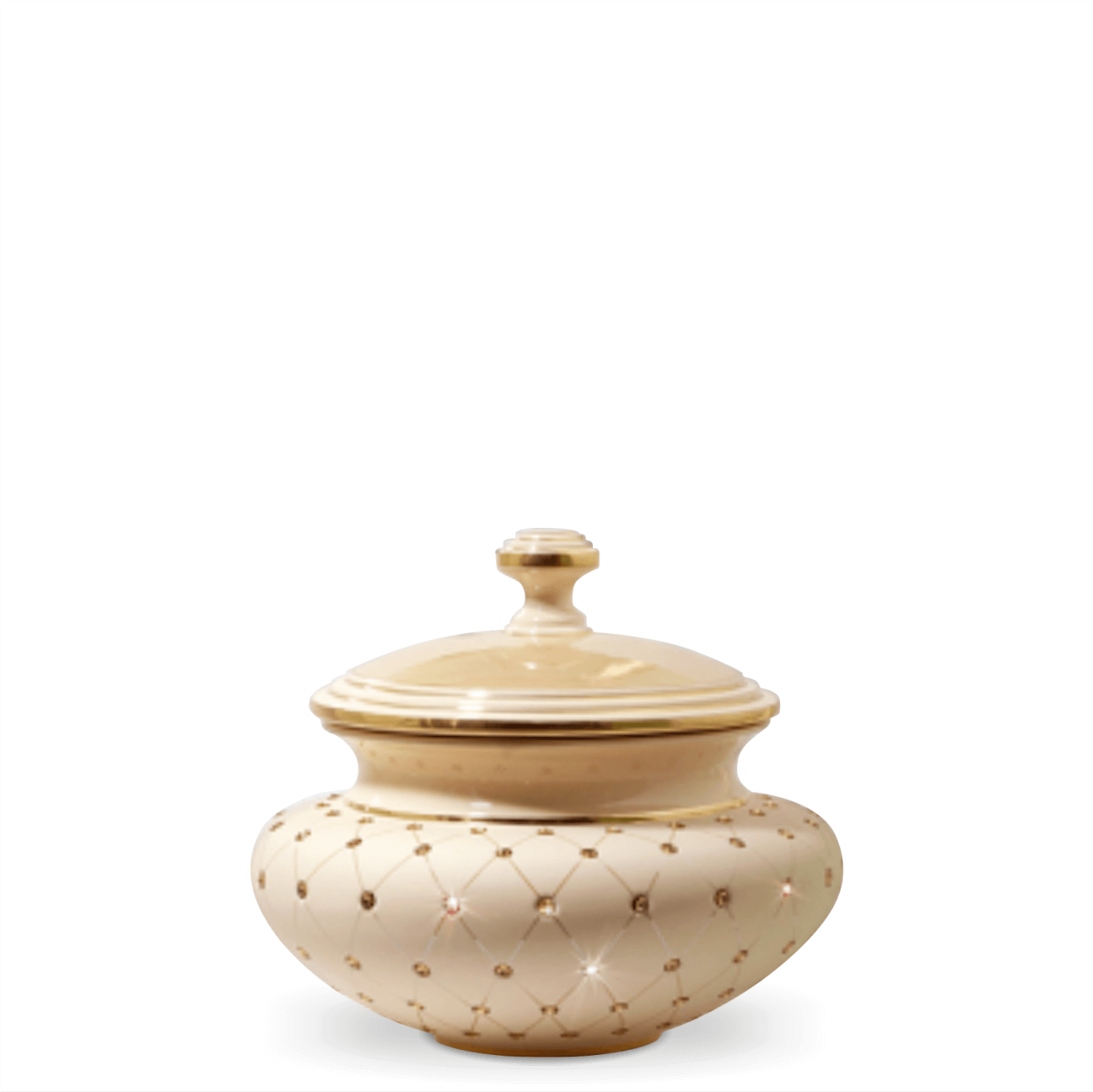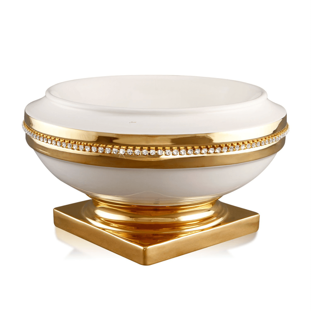 Porzellan: reinweiß, creme oder beige, 24 Karat vergoldet, auch in Silber, Swarovski-Dekor